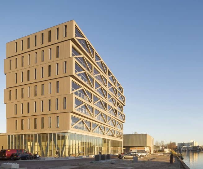 Lemniskade builds projects in a highly complex urban environment. The first project was PATCH22. The “tallest wooden residential building in the Netherlands” was completed in 2016. PATCH22 has won several awards, including the World Architecture News Residential Award 2016, a Green Good Design award and the biennial Dutch Ste Prize for excellent commissioning, the Golden Pyramid. In 2020 Lemniskade completed their latest project: Top-Up, a hybrid wood-concrete building that is built on top of a former transatlantic communication-cable testbuilding. Just like Patch22, Top-Up is built according to the “Open Building” philosophy.
